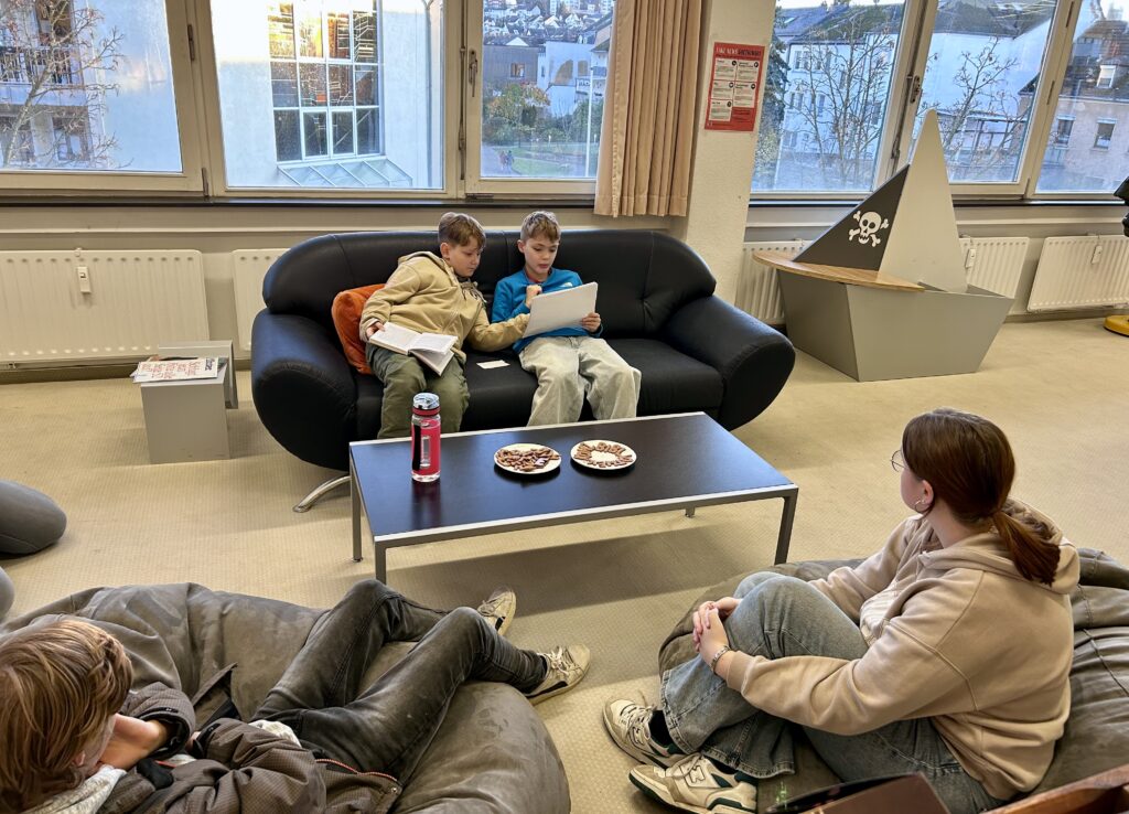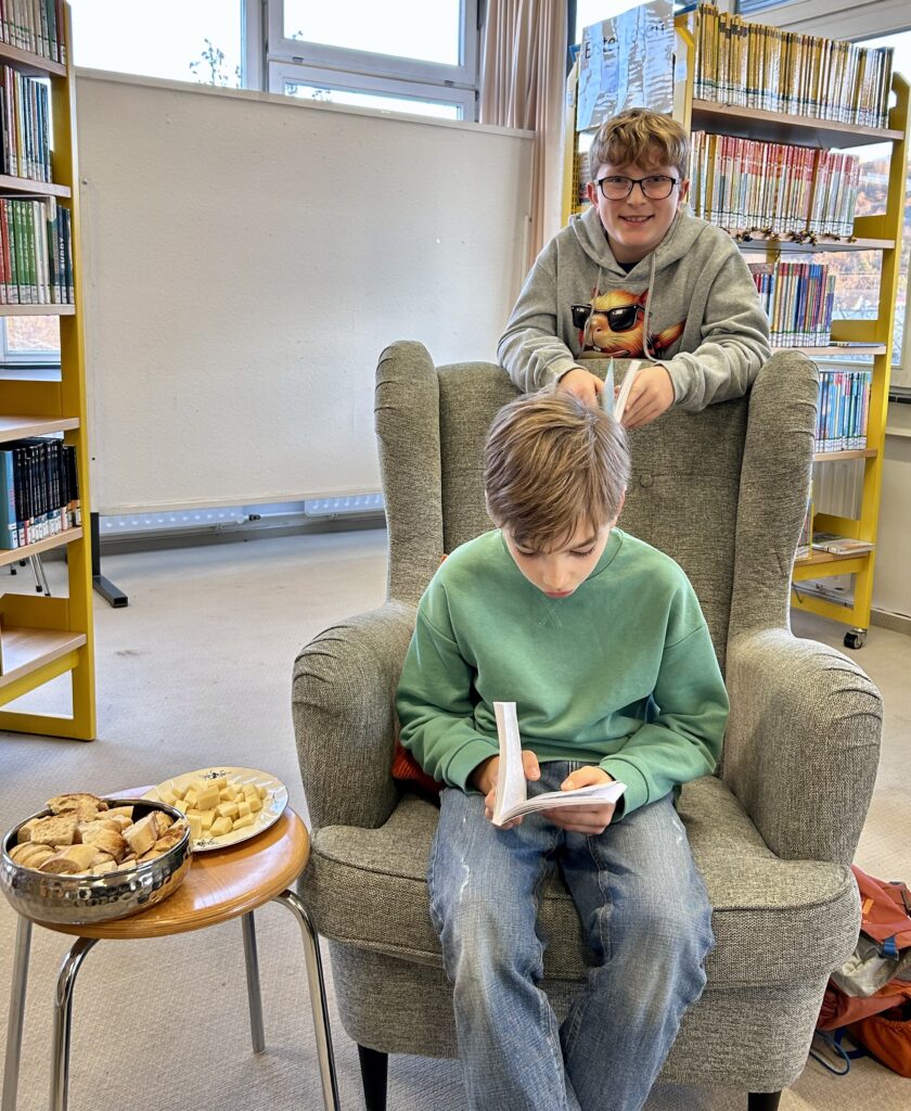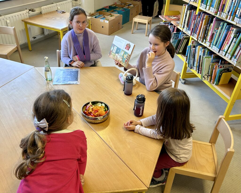 Am Nachmittag des Bundesweiten Vorlesetags trafen sich Lesescouts vor der Stadtbücherei Konz, um eine kreative, kulinarische Lesung an vier Stationen zu veranstalten. An jeder Station wurden köstliche Kleinigkeiten wie beispielsweise, Käse, Baguette und frisches Gemüse zum Essen angeboten, die perfekt zu den vorgelesenen Büchern passten.