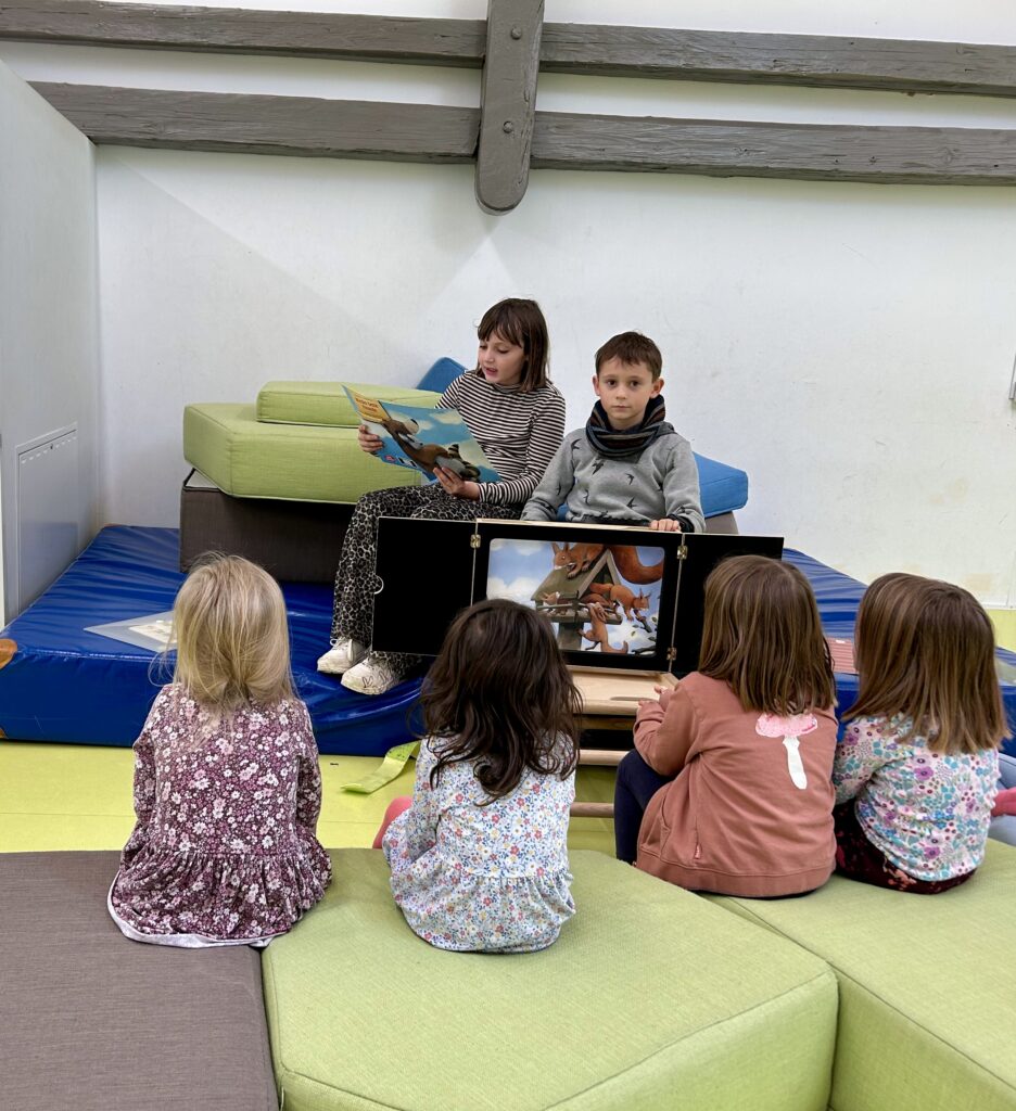 Am Montag 24.11.25 besuchten die Lesescouts die Kinder in der Kita Nittel, die sie freudig erwarteten. Nach der kurzen Vorstellung der mitgebrachten Kamishibai- Geschichten ging es auch schon los. Ob in der Leseecke, der „Baustelle“ oder der Turnhalle. Überall lauschten die kleinen Zuhörerinnen und Zuhörer den Geschichten mit großen Augen. Auch in der Kita Nittel verflog die Zeit viel zu schnell. Deshalb werden die Lesescouts den Kindern natürlich noch einmal einen Besuch abstatten.